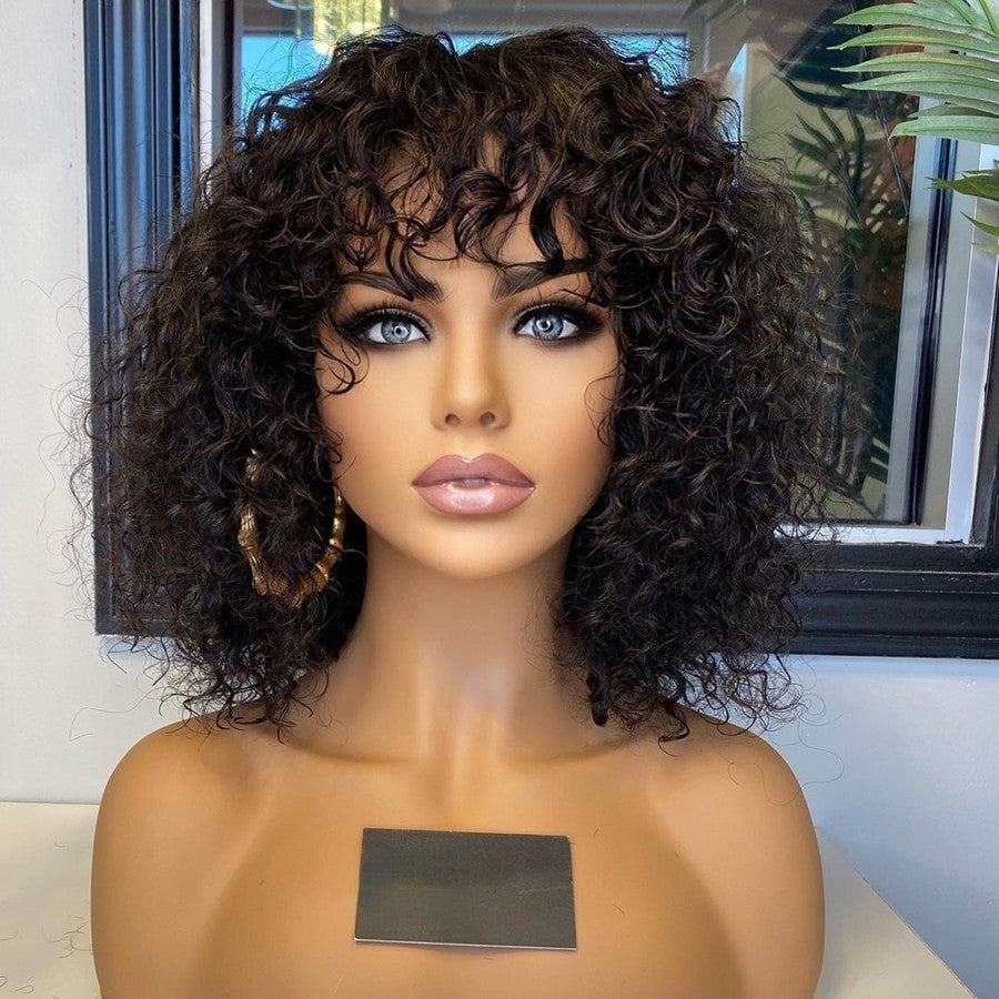 13x4 Bob Curly Wigs With Bang Transparent Lace Human Hair Wigs