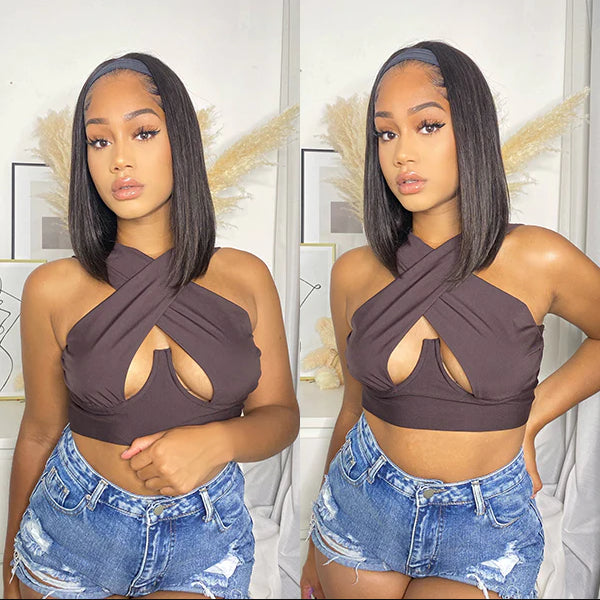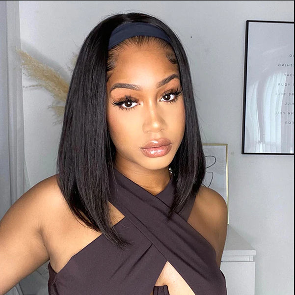 Affordable Headband Wig Bob Straight Throw On & Go Beginner Friendly