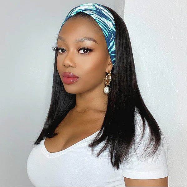 Affordable Machine Human Hair Wig Straight Headband Wig Easy To Wear