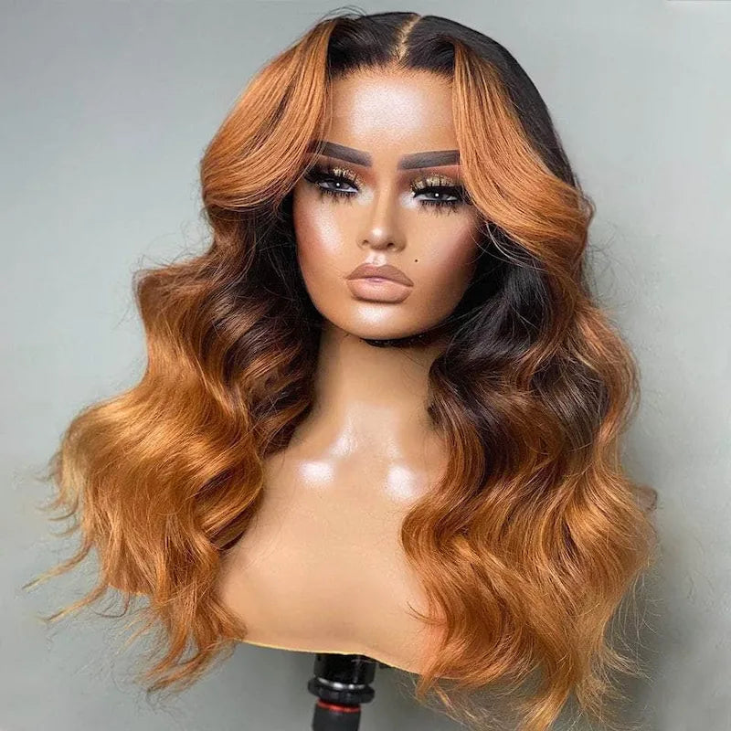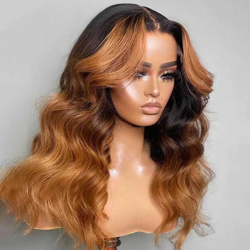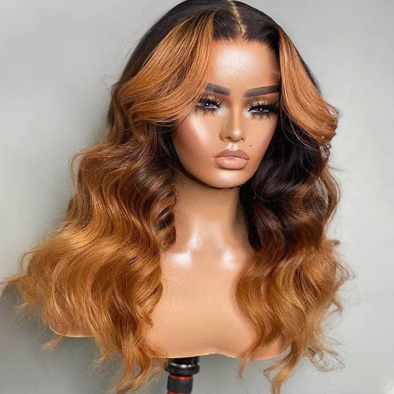 Autumn Color Highlight Ombre Honey Brown Colored Loose Wave 4x4/5x5 Lace Closure Wigs