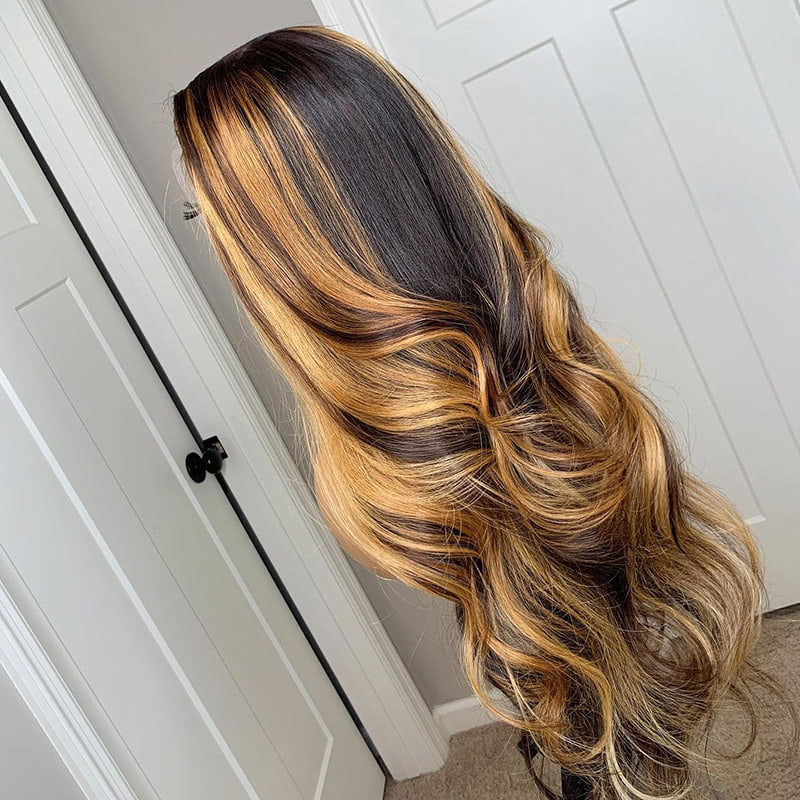 Balayage Color Black Roots Transparent Lace Wig Natural Wave Glueless Wig