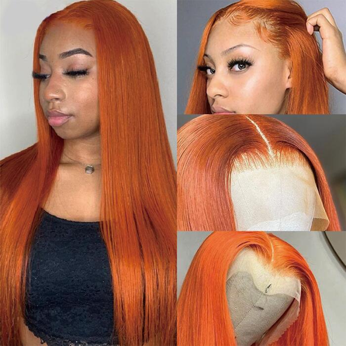 Best Seller Ginger Orange Color Free Style Straight Human Hair 13x4 Lace Wigs