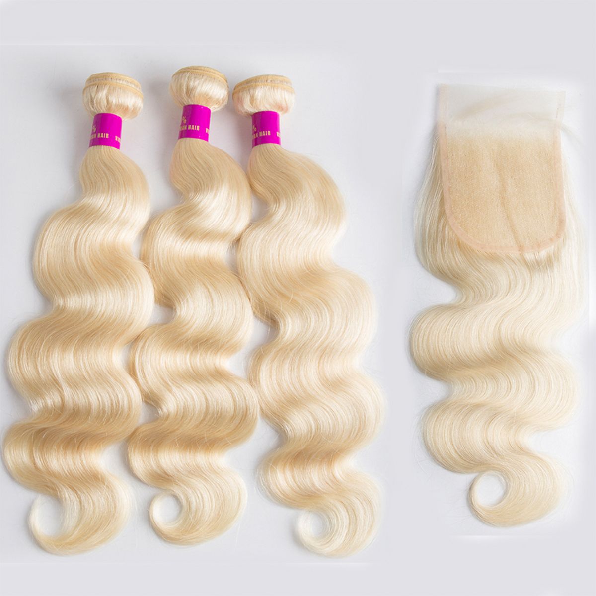 Body Wave Hair Bundles Blonde Color Hair 3Pcs with Free Part Lace Closure