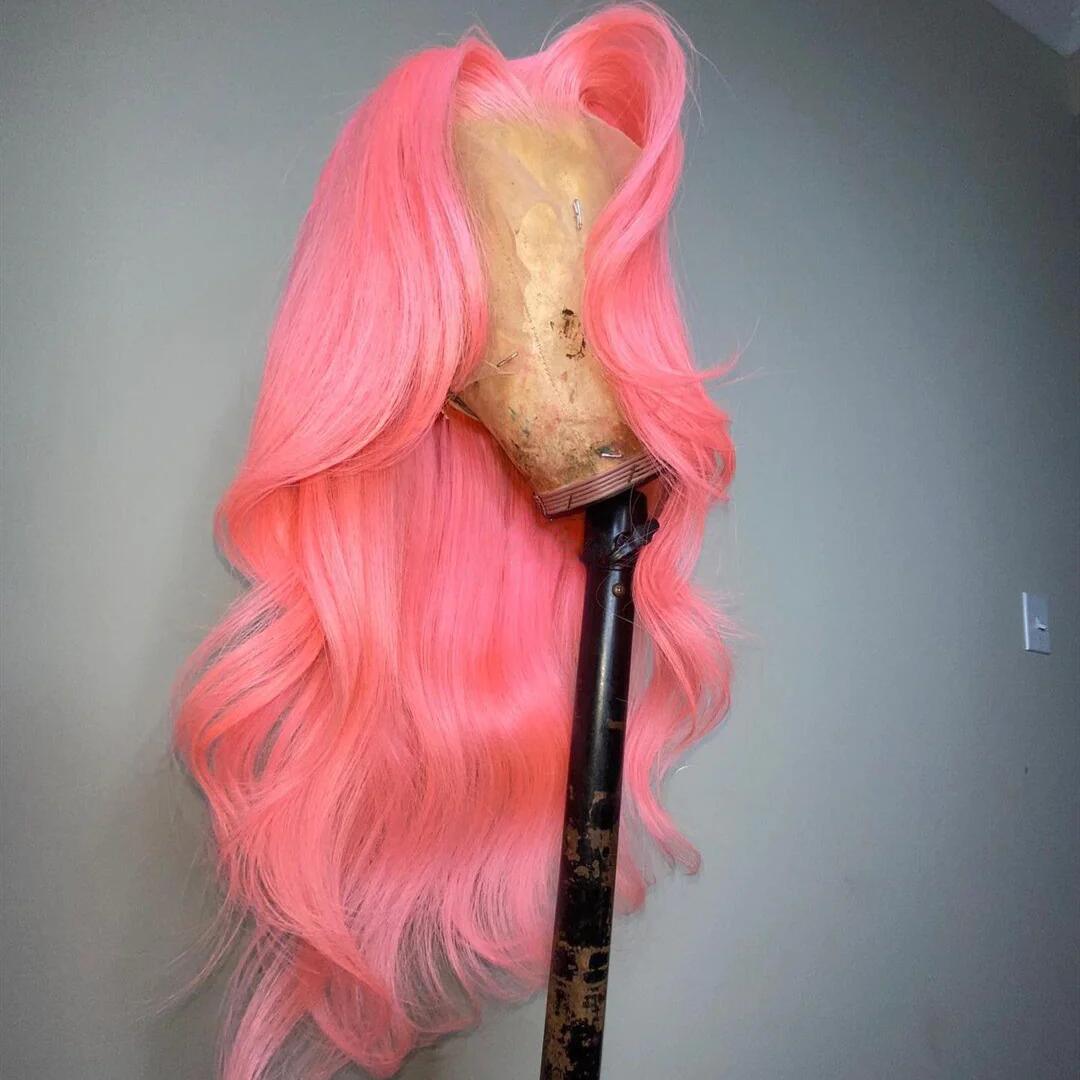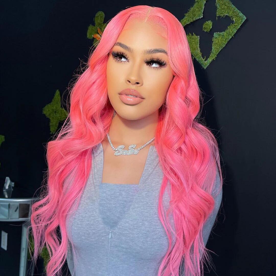 Body Wave Pink Color 13x4 Lace Frontal Wig Affordable 5x5 Lace Closure Wig