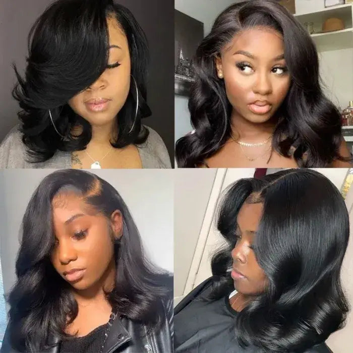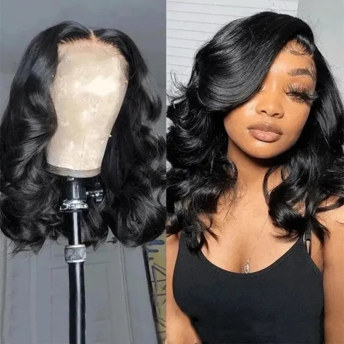 Body Wave Short Bob Wig Natural Black Color Lace Front 13X4 Lace Pre Plucked Hairline