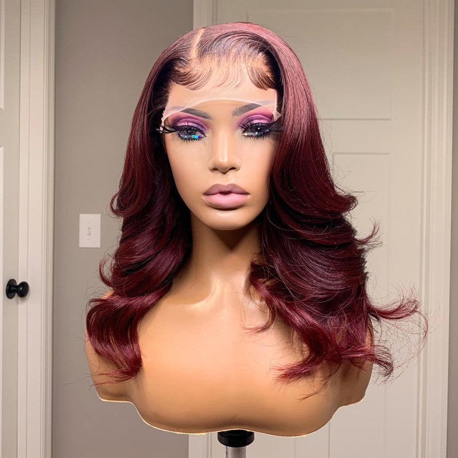 Burg Color Lace Closure Wig Body Wave 4x4/5x5 Transparent Swiss Lace