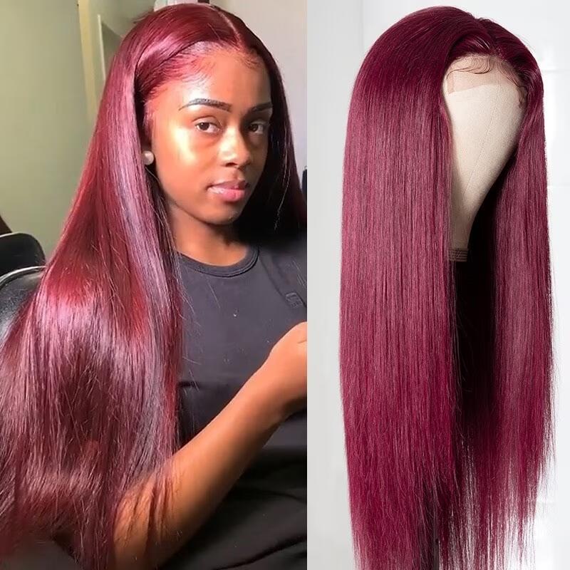 Burgundy Color 4x4/5x5 Lace Closure Wig Transparent Lace Straight Hair