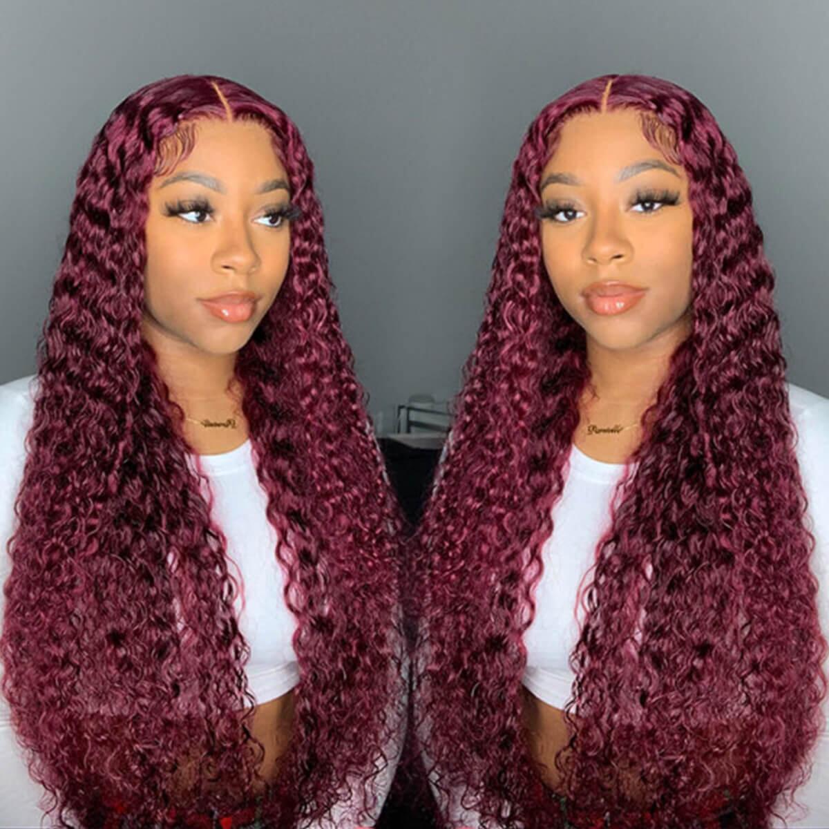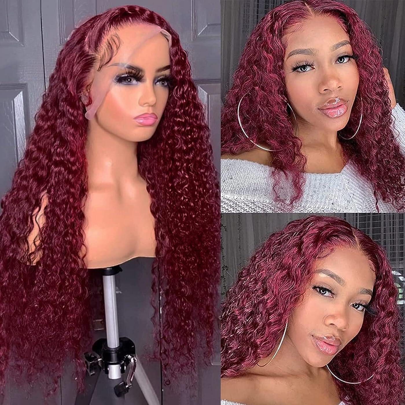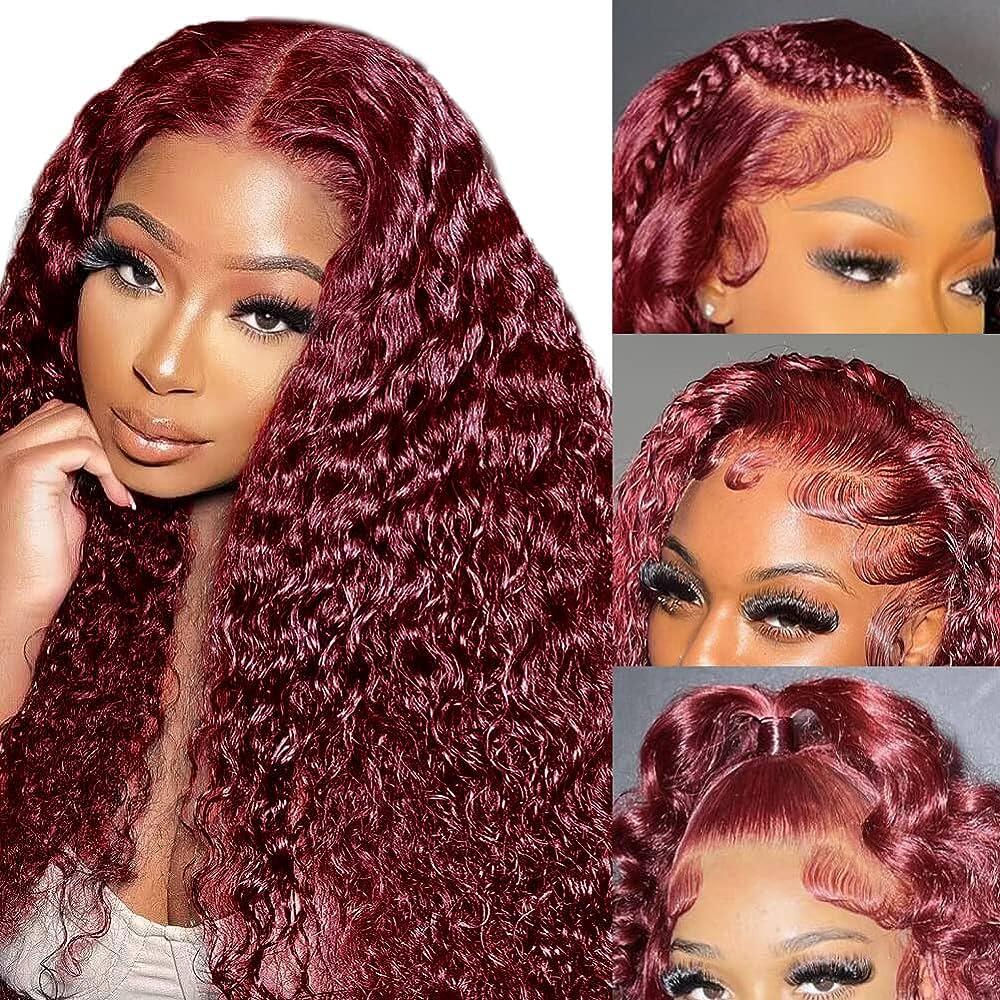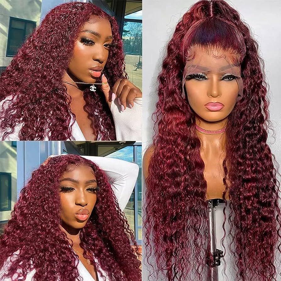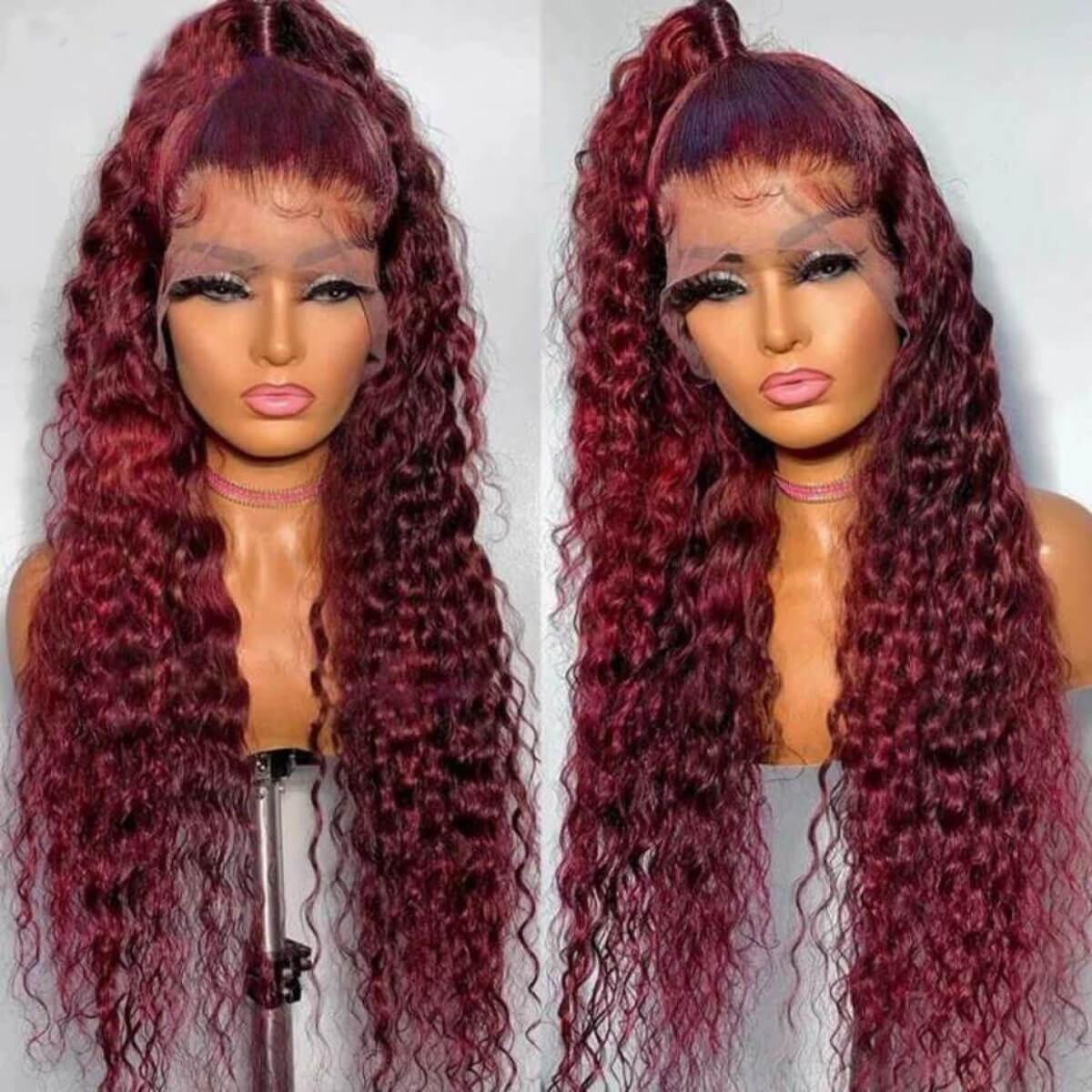 Full Frontal Wig Burg Color Human Hair Curly Lace Frontal Wig