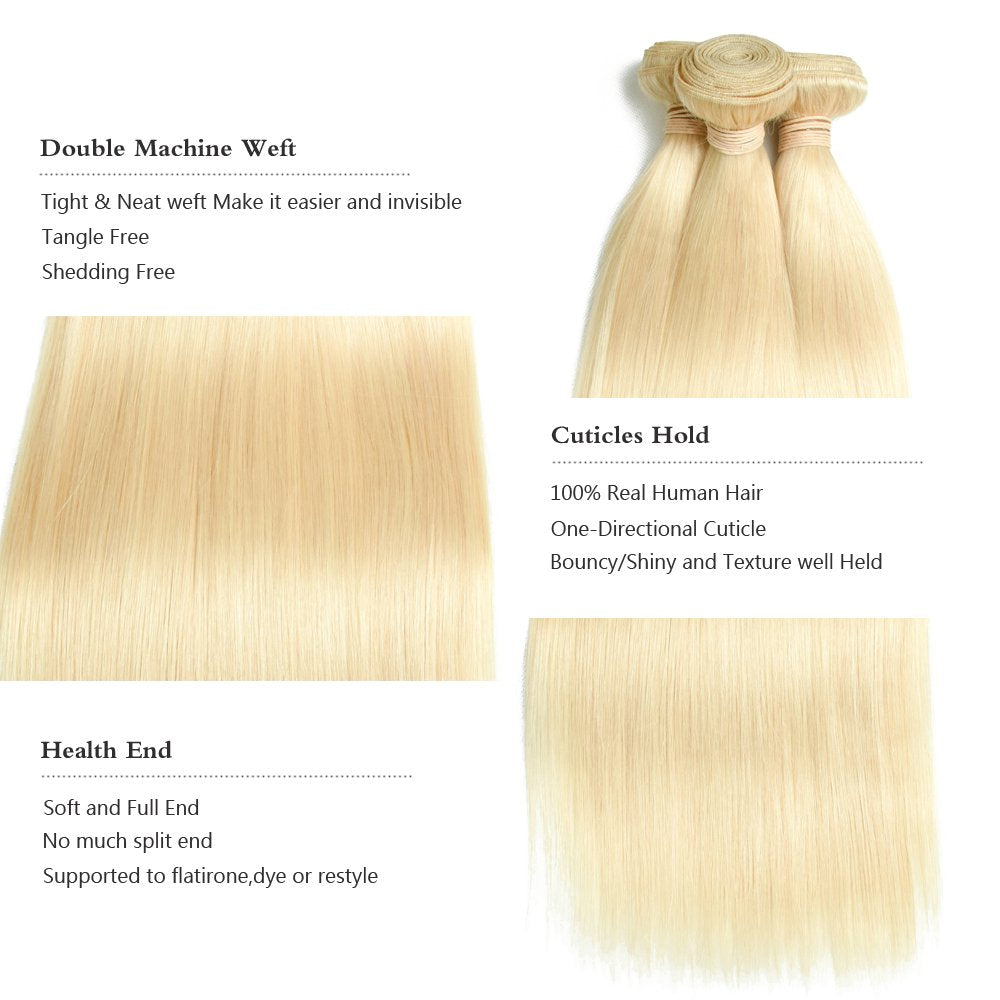 Hot Sale Blonde Color 3 Hair Bundles with 13x4 Lace Frontal Straight Hair