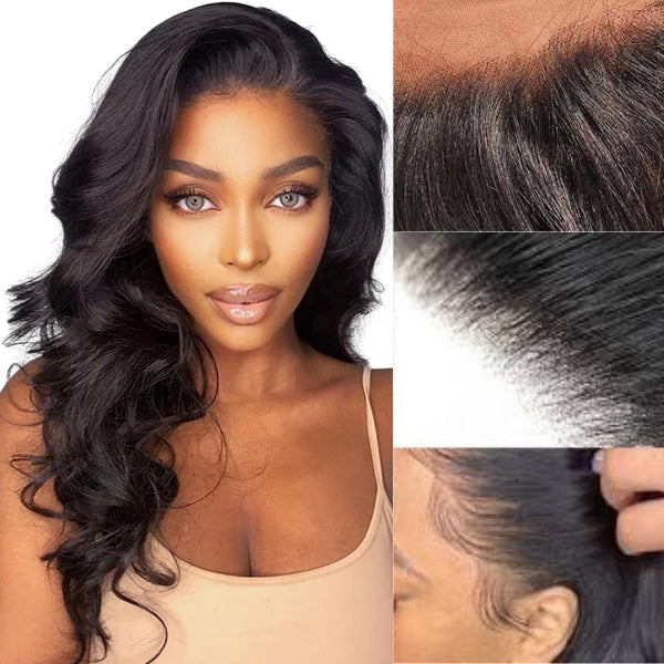 Invisible Lace Skin Melted HD Lace Frontal Wig Middle Parted Natural Wavy Hair