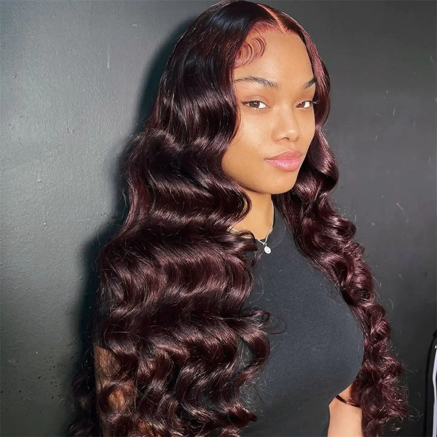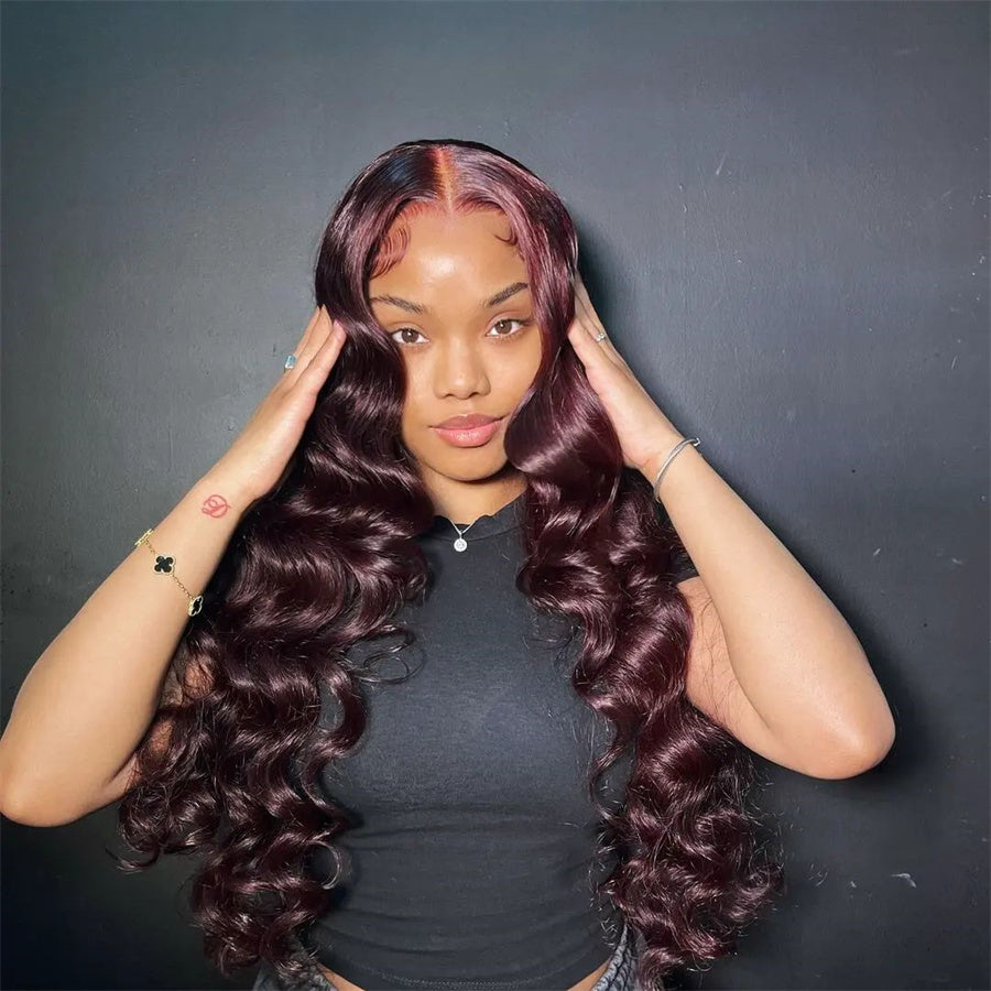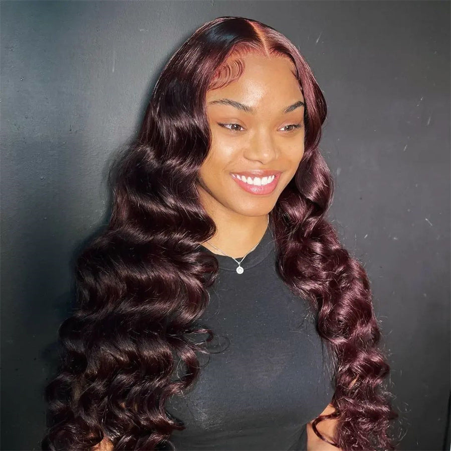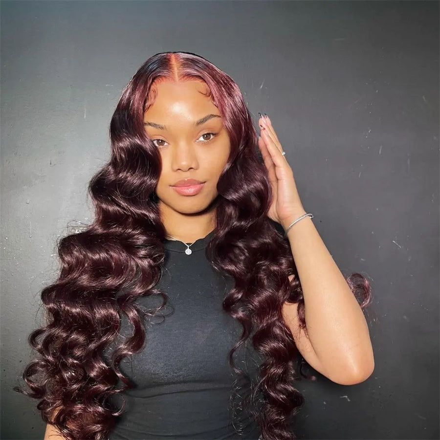 Pre Plucked Hairline 99J Color Body Wave 4x4/5x5 Lace Closure Wig