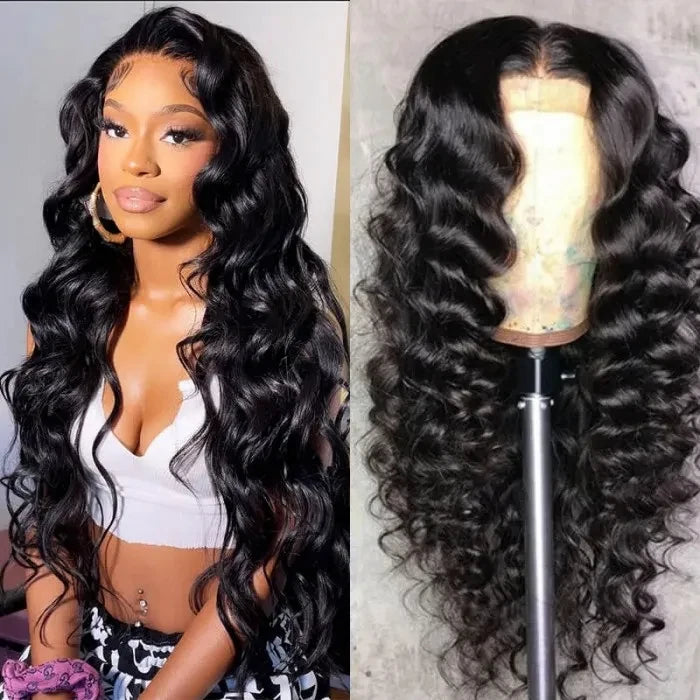Loose Wave High Density13x4 Transparent Swiss Lace Frontal Wig Human Hair Wigs