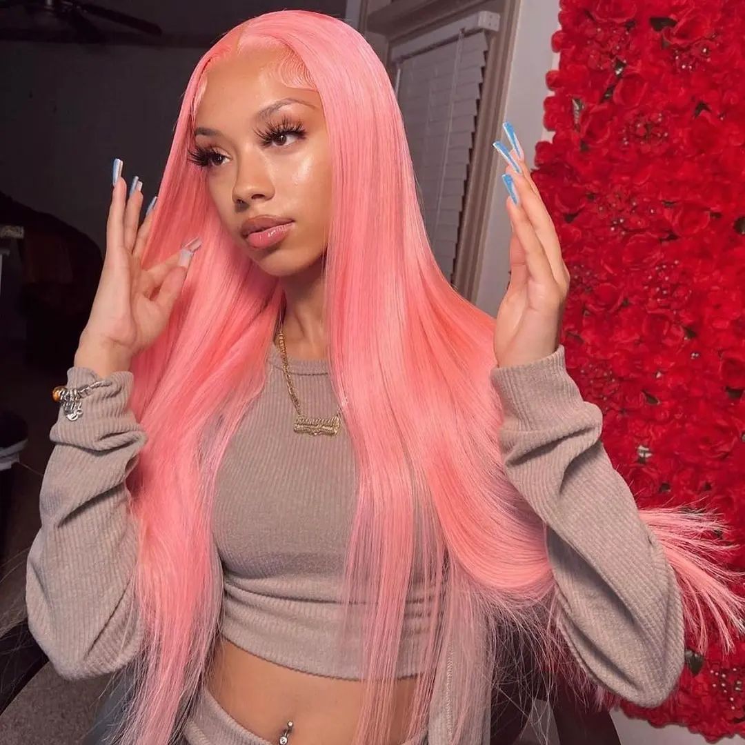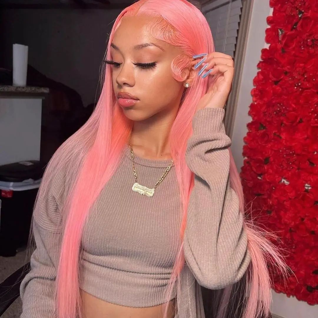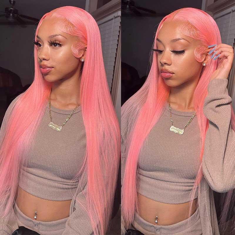 Must Have! Pink Color 13x4 Lace Frontal Wig Straight 5x5 Lace Closure Wig