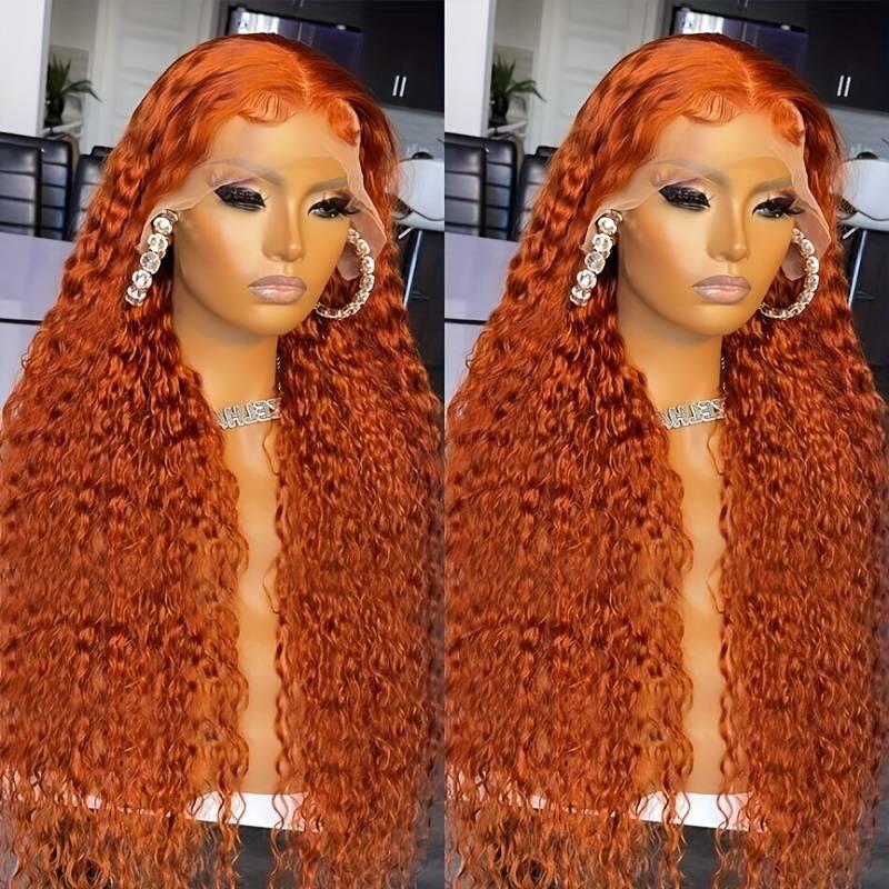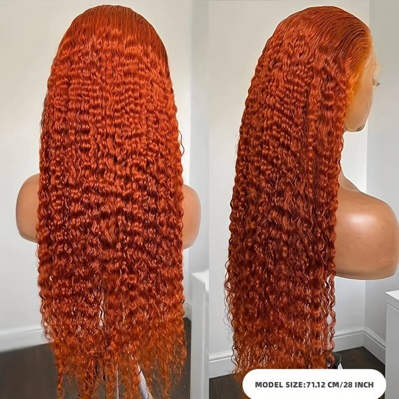Pre Colored Ginger Orange Deep Curly Human Hair Lace Frontal Wig