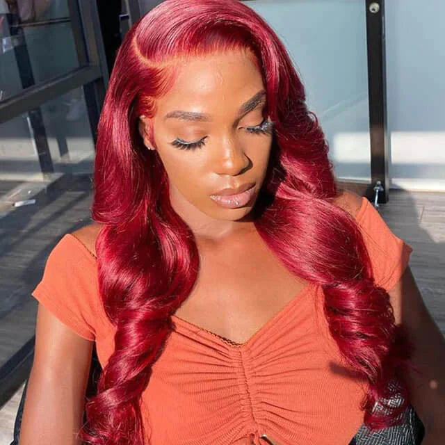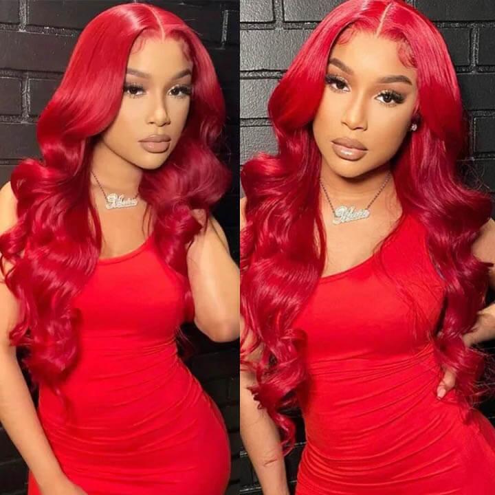 Pre Colored Lace Wig 4x4 Lace Closure Red Color Body Wave Lace Wig