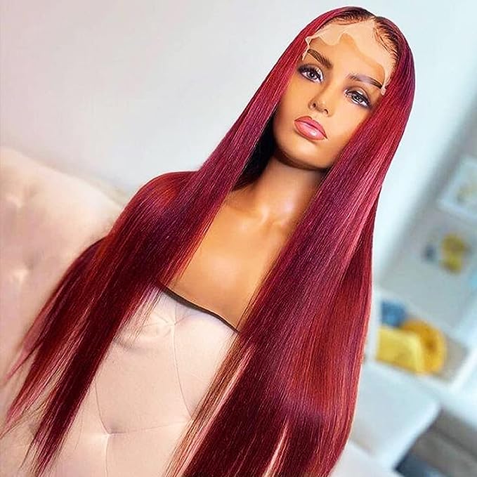 Real Swiss HD Lace Ombre Red Color Straight 13x4 Lace Frontal Wig