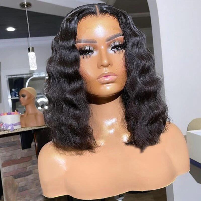 Short Bob Wig Deep Wave Lace Closure Wig Transparent Lace Frontal Bob Wig