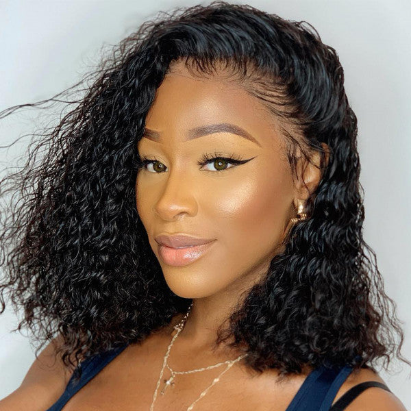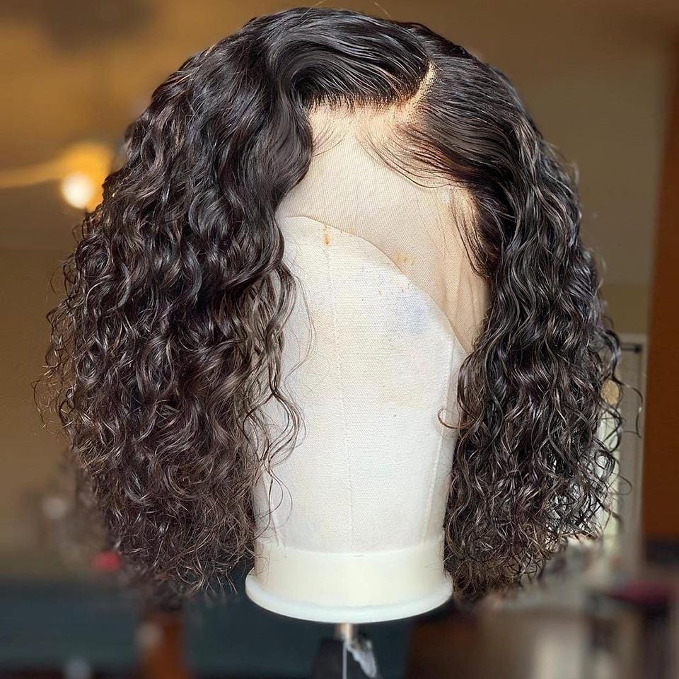 Side Parted Bob Curly Wig Transparent Lace 13x4 Front Lace Wigs