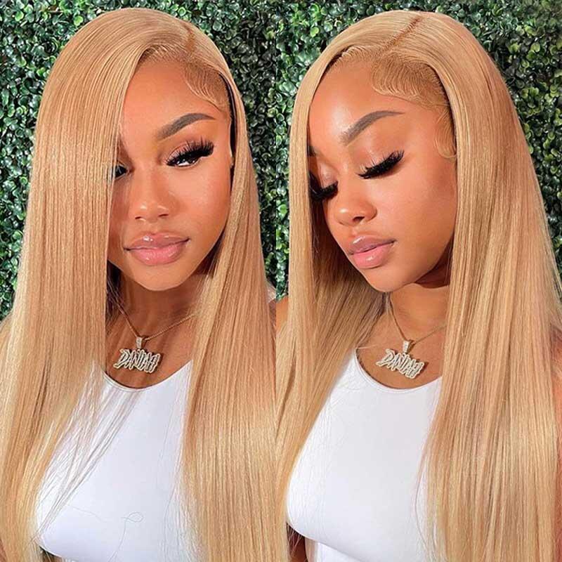 Straight Honey Blonde Lace Frontal Wig Glueless Wigs For Women